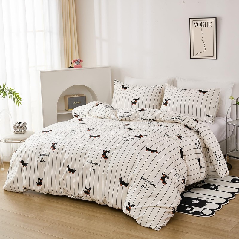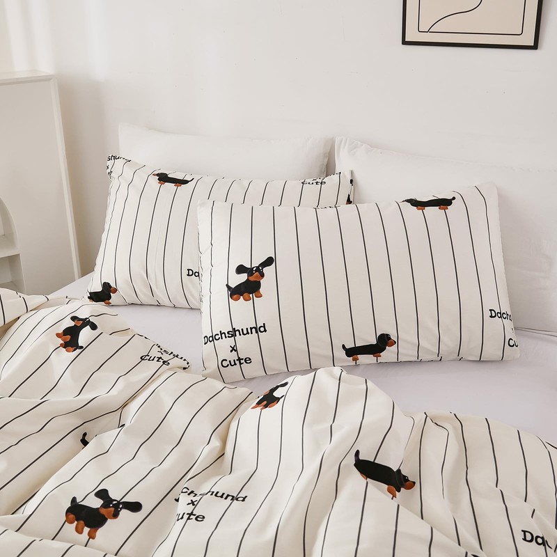 Cozaline Cute Dachshund Duvet Cover Twin Size 100% Cotton Duvet Cover Brown Striped Dog Printed Anime Bedding Set for Boys Girls 3 Pcs Soft Breathable Comforter Cover with Zipper Closure