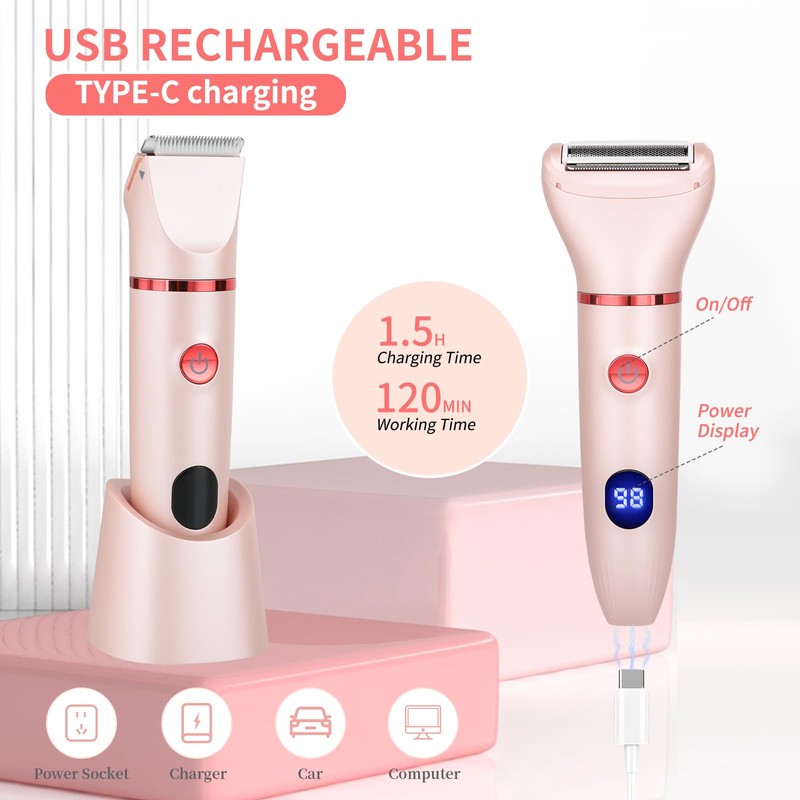 - USB-aufladbar & Tragbar: Mit nur 1,5 Stunden Ladezeit bietet der Intimrasierer für Frauen bis zu 120 Minuten kabellose Nutzung. Das ergonomische Design und das leichte Material machen ihn zum idealen Begleiter für Reisen und den täglichen Gebrauch