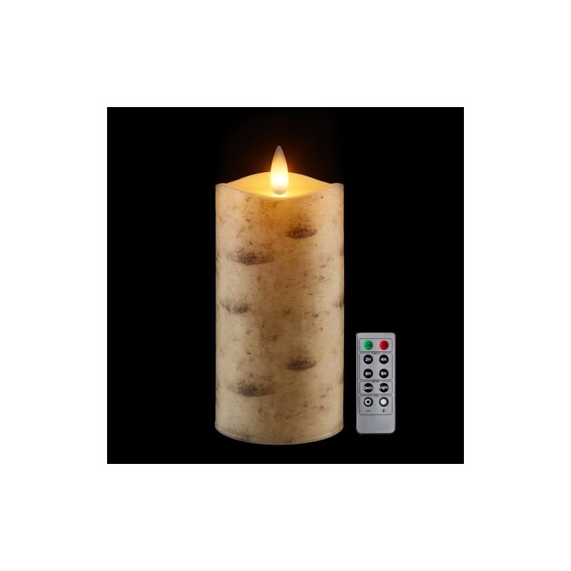 CozierGlow Flameless Pillar Candles Flickering with Remote Timer, Battery Operated LED Candles Up to 400 Hours, 3D Moving Flame Real Wax Candles, D3 x H5, Remote Included (Birch Decal, 5in)
