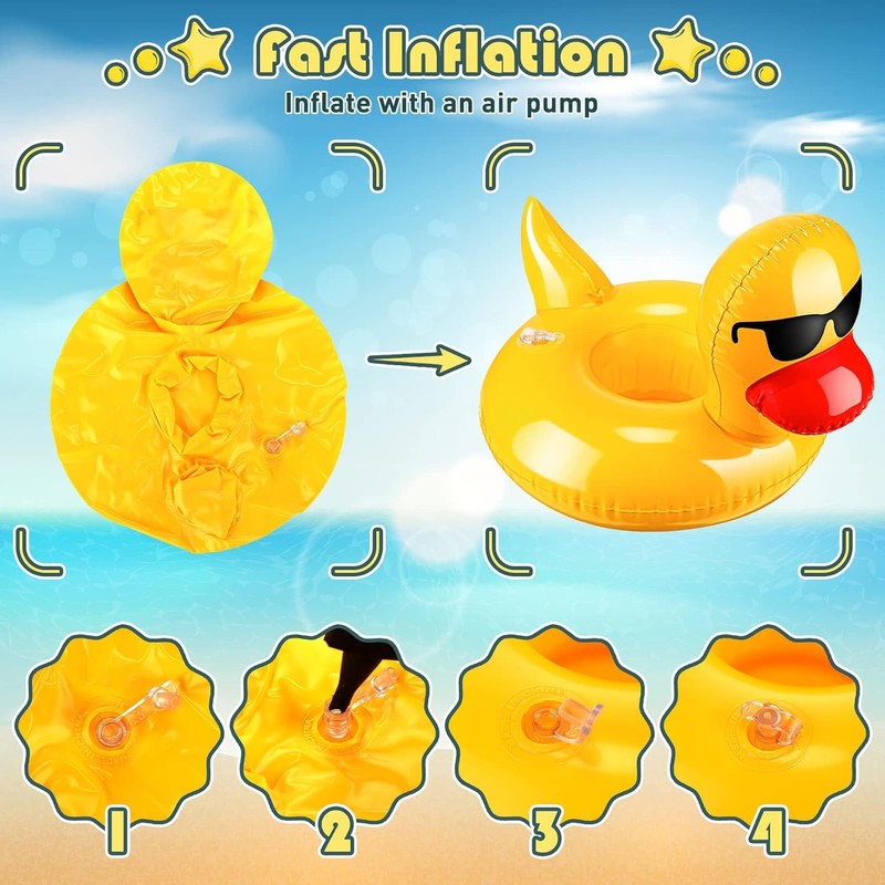 Cozioz 12-Piece Duck Inflatable Drink Floats Set – Reusable Cup Holders for Pool, Party, Hot Tubs, and Summer Fun
