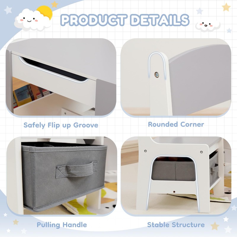 Cozivolife Kids Table and Chair Set (2 Chairs Included),Child Wooden Activity Furniture with Storage Bins Boxes and Book Organiser, 2 in 1 Detachable Tabletop Desk Group for Toddlers Drawing