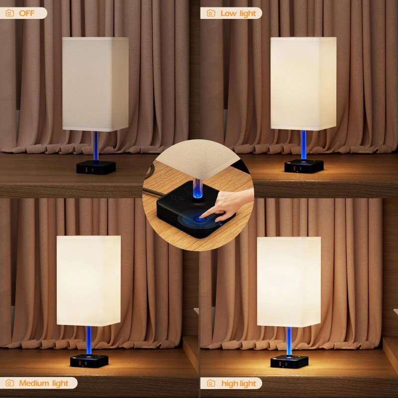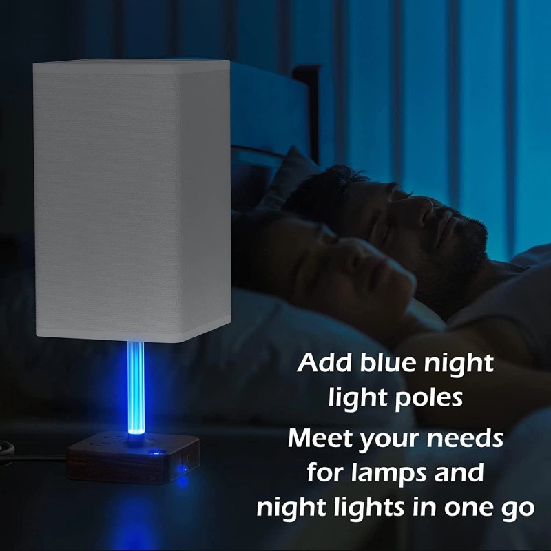 【Dimmable 3-Way Touch Control & Blue Night Light Poles & Backlit Button】bedside lamp with 3 brightness levels each to meets your different needs(nightstand mode,daily use,reading,etc),also with backlit button, it’s convenient for you to adjust the brightness in the dark.The blue night pole is a night light, you don't need to turn on other lights when you sleep.