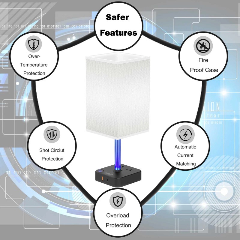 【USB A+C Charging Ports & 2 AC Outlets】The base of this decorative and unique desk and table bedside lamp contains USB port Type C port and 2 outlets power strip so that you can charge your mobile phones, tablets, laptops, and other electronic devices. The USB port functions regardless of whether the lamp is on or off. It will look beautiful in any contemporary home or office.