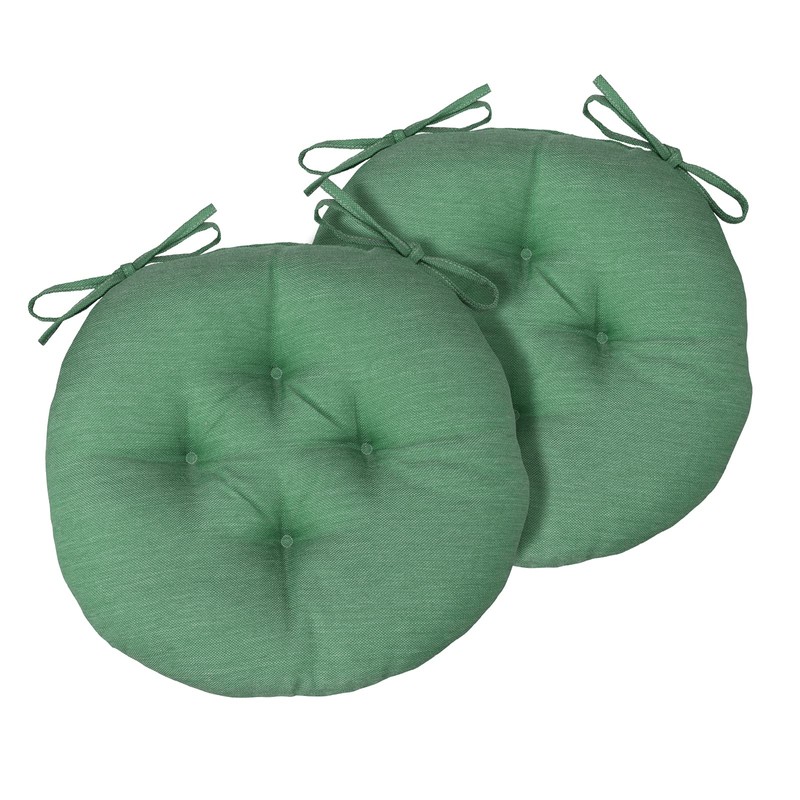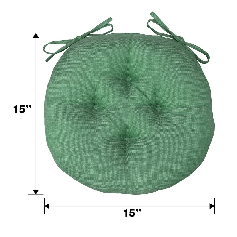 - Set including two round outdoor cushions, 15 x 15 x 2.7 inches, ties long 11.8 inches, perfect size for bistro, dinning chair, rattan chair, etc. Suitable for indoor and outdoor use. Please allow 0.5 inch difference due to manual measurement.