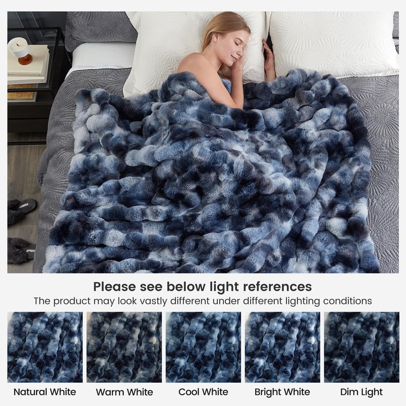 - Experience ultimate comfort and warmth with our Bubble Shape Faux Fur Throw Blanket. Made with 630GSM fluffy faux rabbit fur face side and silky micromink fleece inside, this throw blanket is ultra soft and cozy on both sides. The selected fabric weight provides the perfect balance of warmth without causing overheating, making it ideal for cold moment.