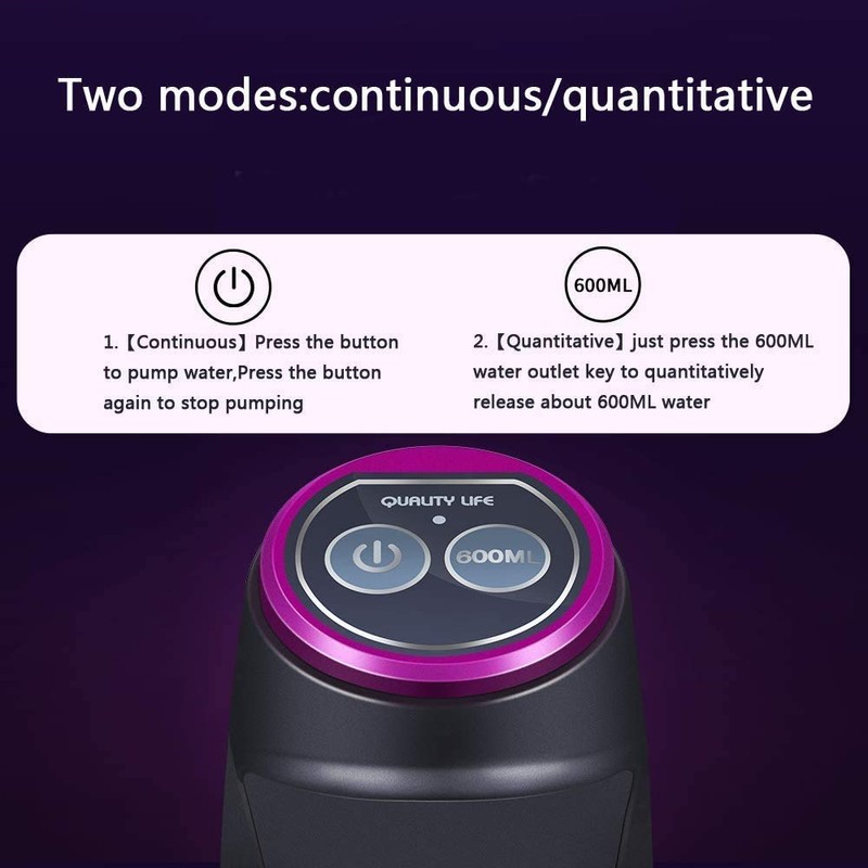 • [ Upgrade USB Rechargeable Battery ] - Newly upgraded internal chip in 2020, perfectly solve the problem of battery problem to charge. This water gallon pump built in rechargeable 1200mAh lithium battery. Once full charged can used for 1 month or 5-6 bottles of 5 gallon water bottle, no need to charge every day. It can be taken along anywhere for water dispensing. Suit for Indoor or Outdoor.