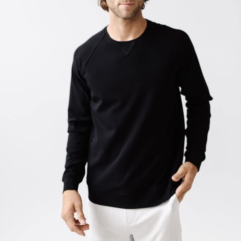 Cozy Earth Men’s Pullover Crew Neck Sweatshirt - Lightweight Viscose from Bamboo Blend - Ultra Soft Brushed Fabric Crewneck Sweater for Men - Black X-Large