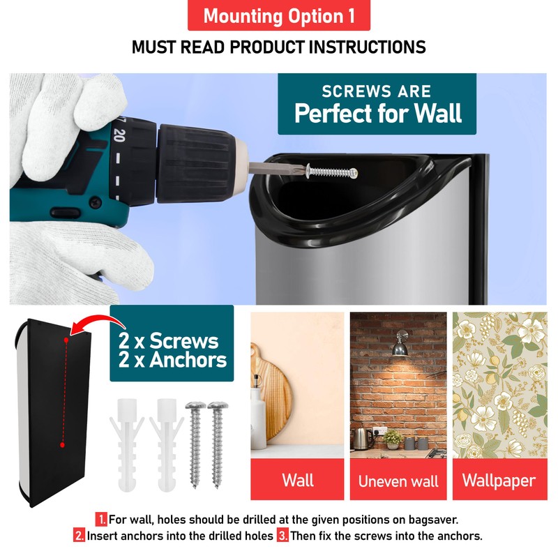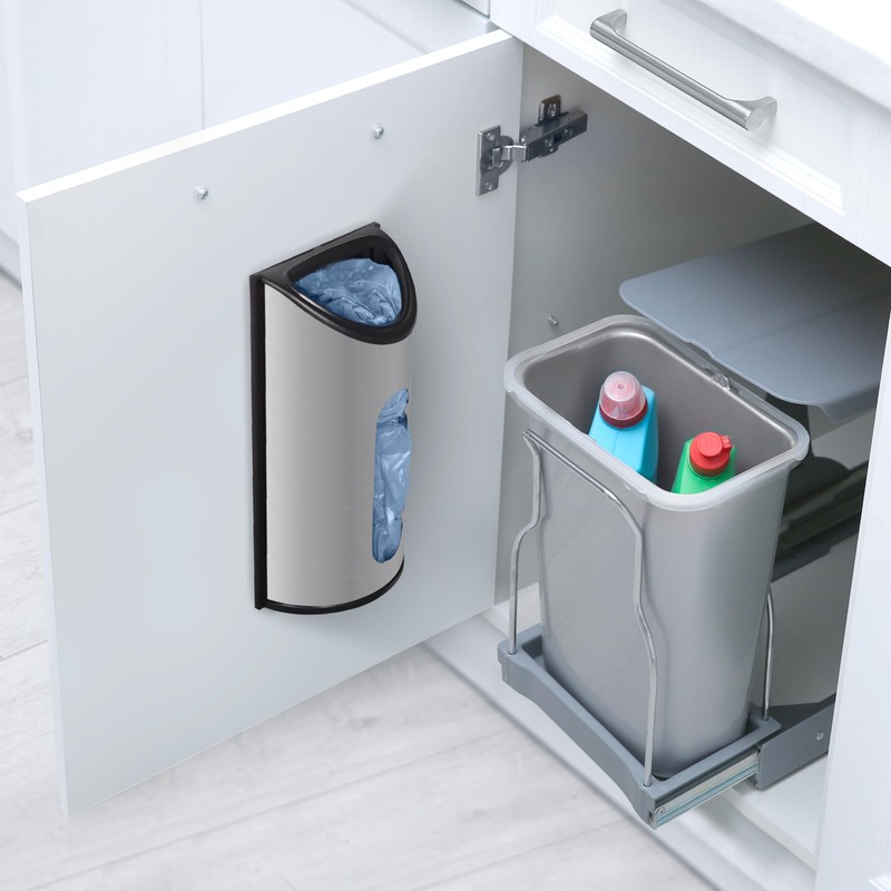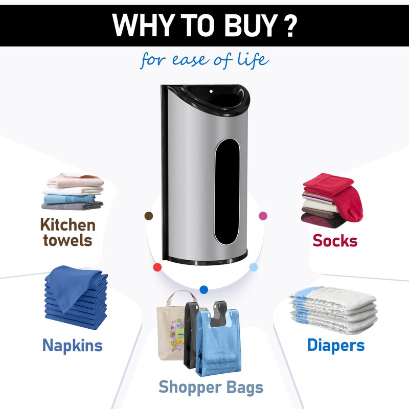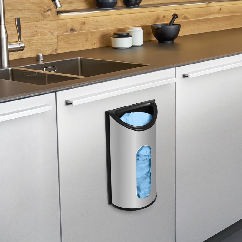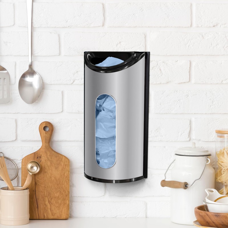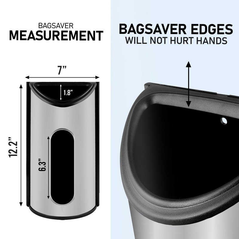 - Fingerprint-resistant stainless steel bag saver for clean and stylish plastic bag storage