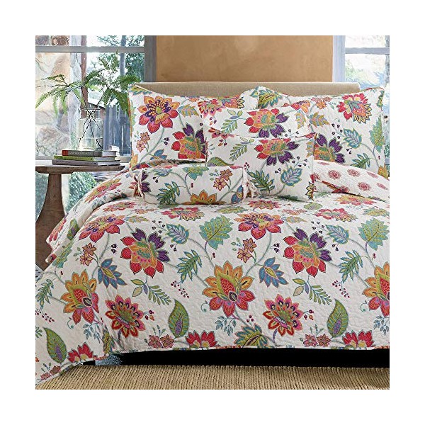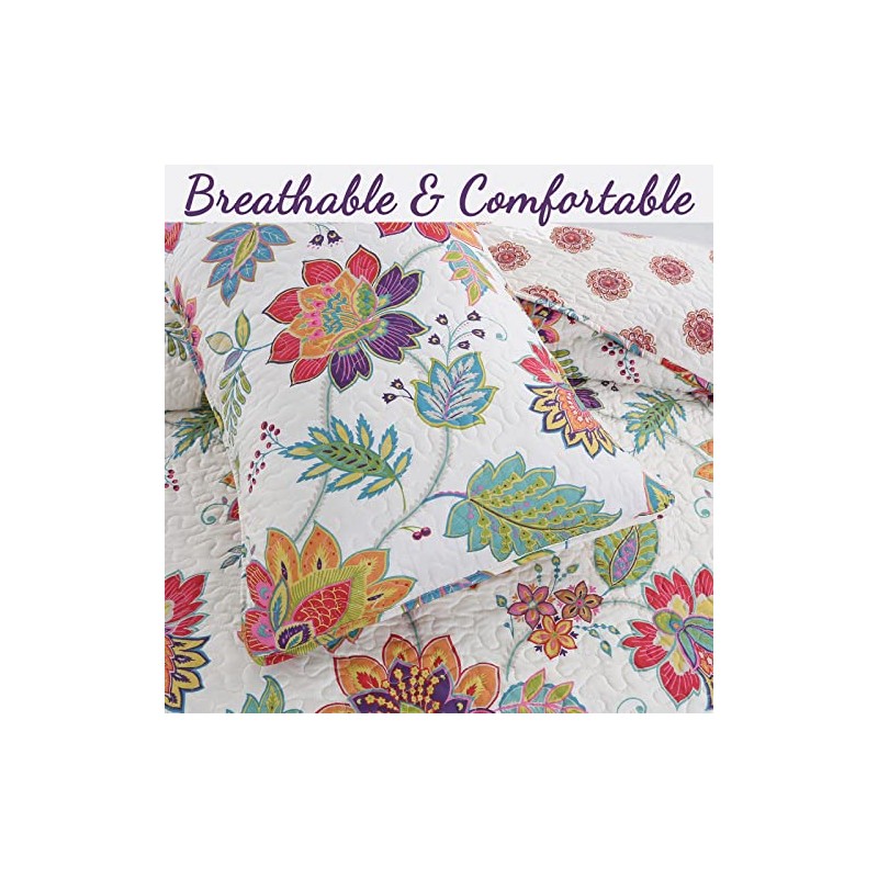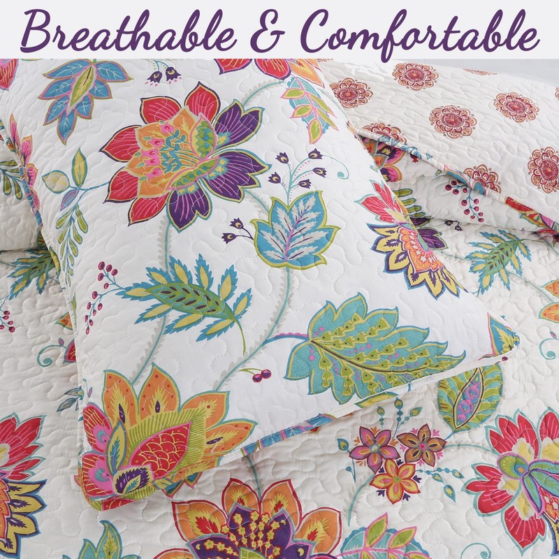 Cozy Line Home Fashions Gypsy Floral Reversible Quilt Bedding Set, Bedspread Coverlet Lightweight for All Seasons (Spring Blooming, Queen - 3 Piece)