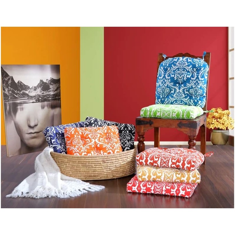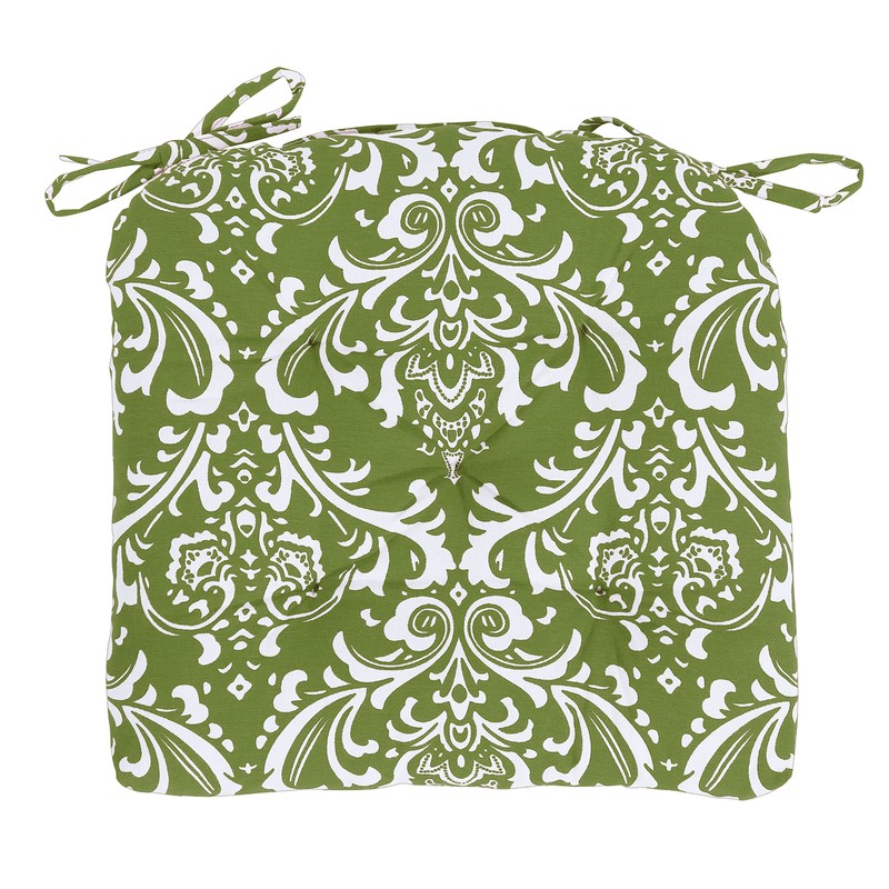 COZY TRENDS Handmade Cotton Chair Pads Cushions Seat Pad with Ties 16''x16'' for Dinning Kitchen Living Room Chairs Office Chair Bench Thick Reversible Damask Design U Shape (Sage)