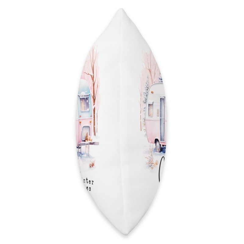 Cozy winter vibes cold snow flakes ice storms fun camping Throw Pillow