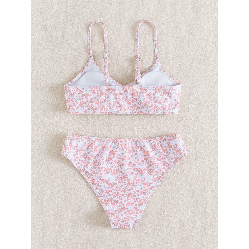 COZYEASE Girls' 2 Piece Ditsy Floral Print Knot Front Ruched Triangle Bikini Swimsuit Multicolor 8-9Y