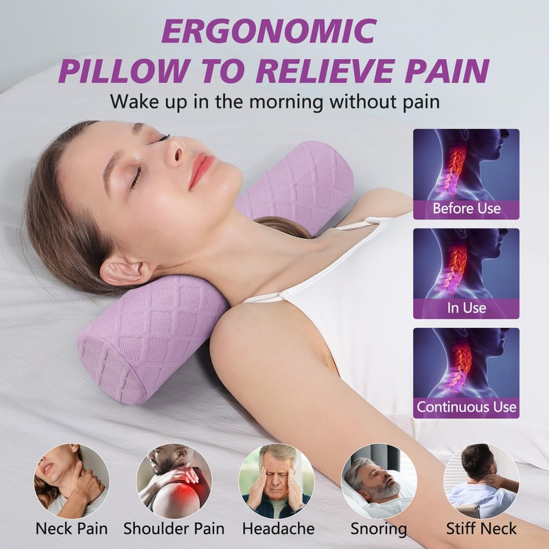 • 【 Ergonomic Cylinder Pillow 】 Our round cervical pillow for neck pain is ergonomically designed to help provide a therapeutic sleep posture to relieve or prevent head, back, neck, and shoulder pain caused from uncomfortable sleep and poor spinal alignment. . Perfect curvature helps the vertebrae stay relaxed, keeps neck and shoulders aligned, and maintains the natural curvature of the spine, so the neck traction pillow can be used as a posture pillow to adjust cervical curvature.