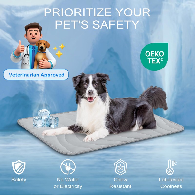 - PRIORITIZE YOUR PET'S SAFETY: Cozyide dog cooling pad is made of harmless and veterinarian-approved cooling material, we prioritize the protection of pet health. With excellent breathability, chew resistance and sturdy material, your pets can stay safe and comfortable all year round