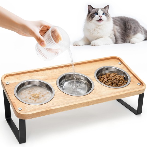 CozyLazy Elevated Cat Bowls, 15° Tilted Wood Stand, Anti-Spill Design, Easy to Clean, Ideal for Water, Dry & Wet Food