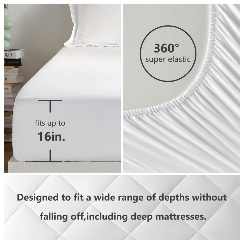 - Elaborate Design: The elastic deep pocket fitted sheet fits mattress max up to 16" deep. That can always keep non-slip no matter how you twist and turn in your bed. The comforter features durable box stitching which offers sophisticated look alongside simplicity and will also stable inside filling