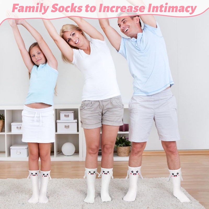 - Classic Magnetic Socks: The family magnetic socks feature a unique 3D printed design, which has cute printed smiley faces and adorable magnetic hands. The cute parent-child socks can be used for your daily wear or for couples, parent and children and so on. You can wear our hand in hand classic socks to liven up the holiday or party atmosphere and spread joy.