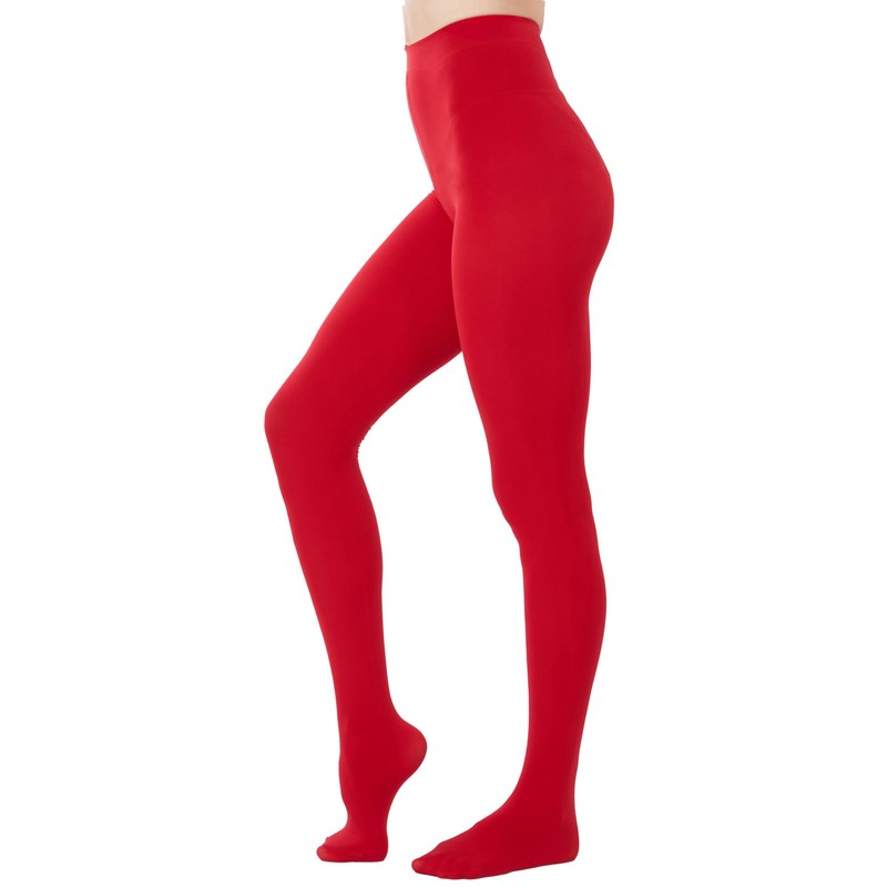 CozyWow Women's 80 Denier Solid Color Soft Opaque Footed Tights red xs