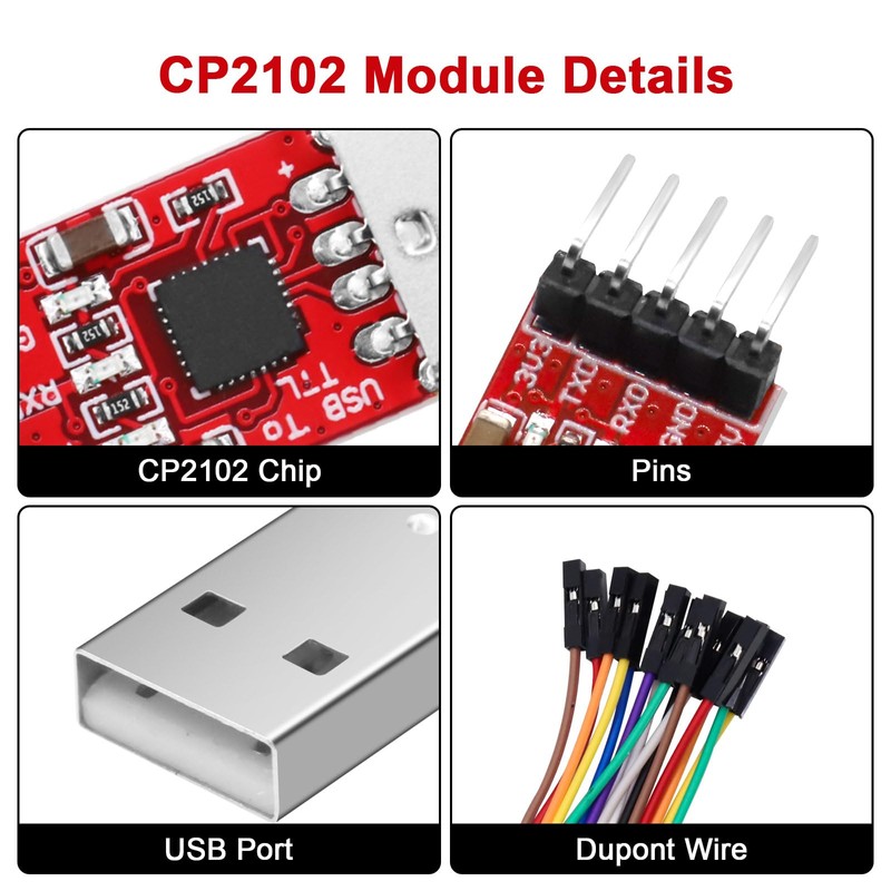 • High-speed transmission: CP2102 module supports data rates up to 1Mbps for fast, stable USB to UART conversion.
