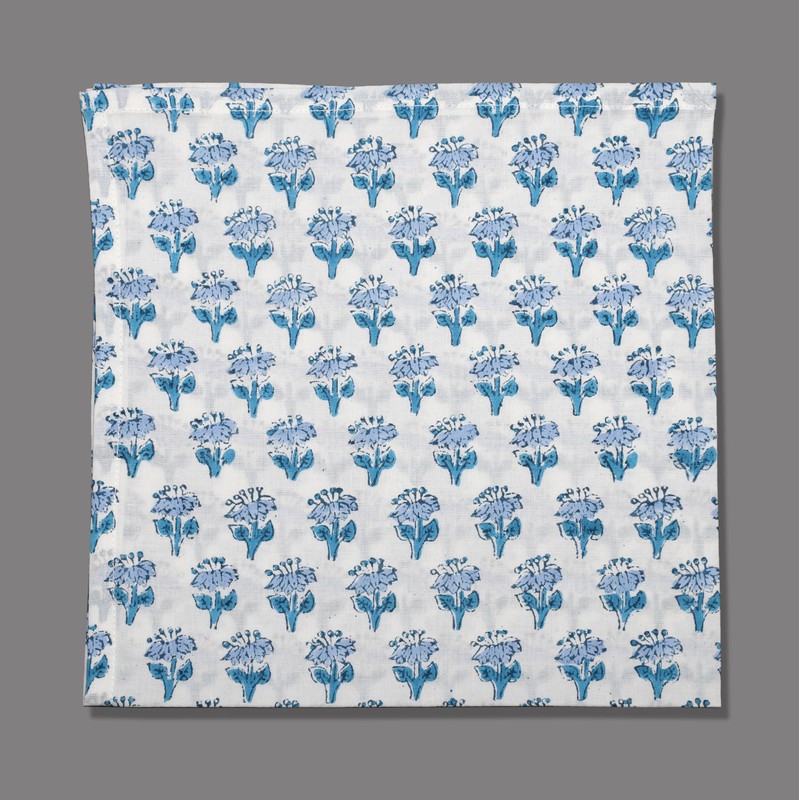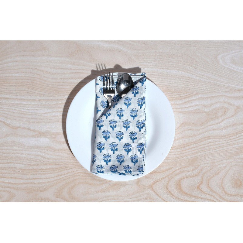 CPC Cloth Napkins Set of 6 Cotton Printed Dinner Block Print Napkins I Wedding Cocktail Cloth Floral Napkins I 18x18 in I Apatite Blue