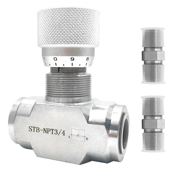 - SPECIFICATIONS: 3/4" Hydraulic Control Valve has a carbon steel body with 3/4” NPT Port Size, 7.25 PSI spring setting, 46 GPM flow rate, and maximum working pressure of 5000 PSI. Graduated knob and graduated spindle to accurately control flow.With 2 Pcs 3/4" x 3/4" NPT Male Thread Pipe Adapter.