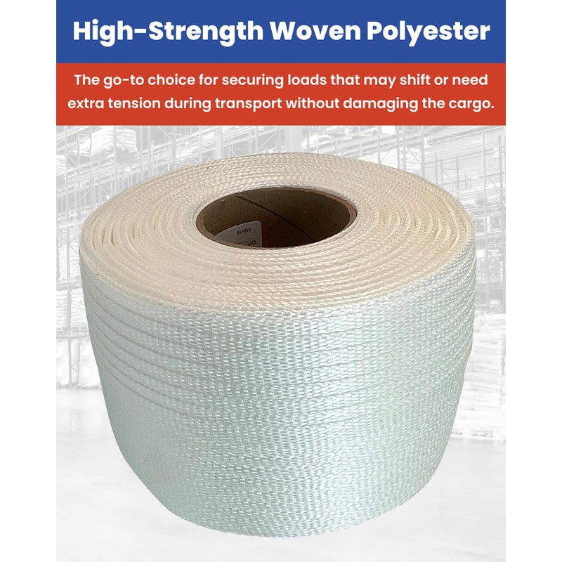 - High-Strength Woven Polyester Strap: Ideal for securing loads that may shift or require extra tension during transport, our woven cord strapping offers superior protection without damaging the cargo. Easily tie by hand or use with a buckle for added security. Our heavy duty strapping features an oscillated wound for smooth handling and application.