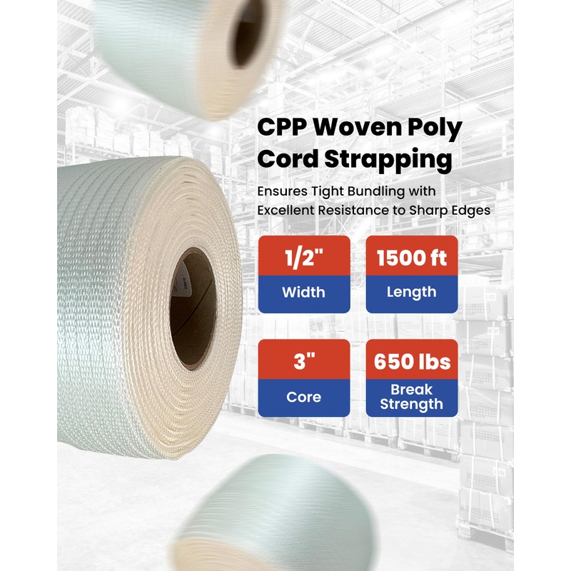 - Versatile Size Options: Our woven poly cord strapping comes in various sizes, including 1/2" to 1 ½" widths and lengths up to 2500 ft. Our strapping caters to both light and heavy-duty applications, ensuring a perfect fit for your packaging requirements.