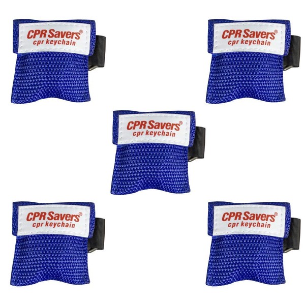 CPR Savers & First Aid Supply CPR Face Shield Mask Keychain Kit for CPR Training and Rescue (5, Blue)