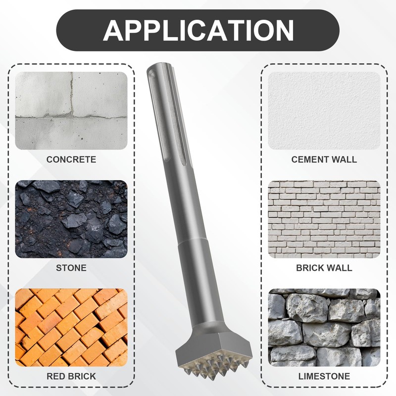 • Versatile: thanks to its unique design and dimensions, this chisel is suitable for a variety of applications, such as Chisel and fine finishing work on stone slabs, bridges, walls, concrete and cement coverings