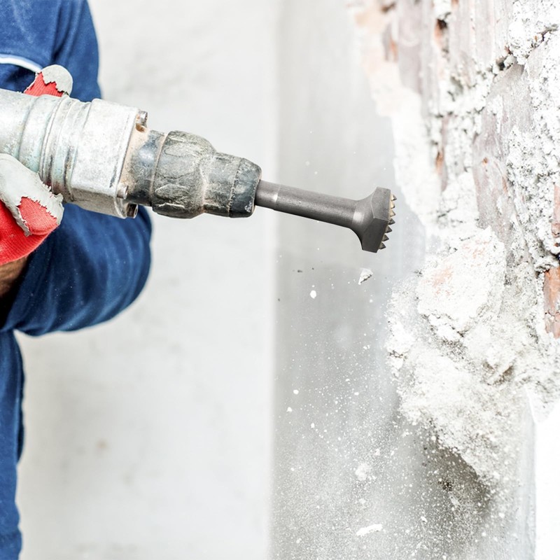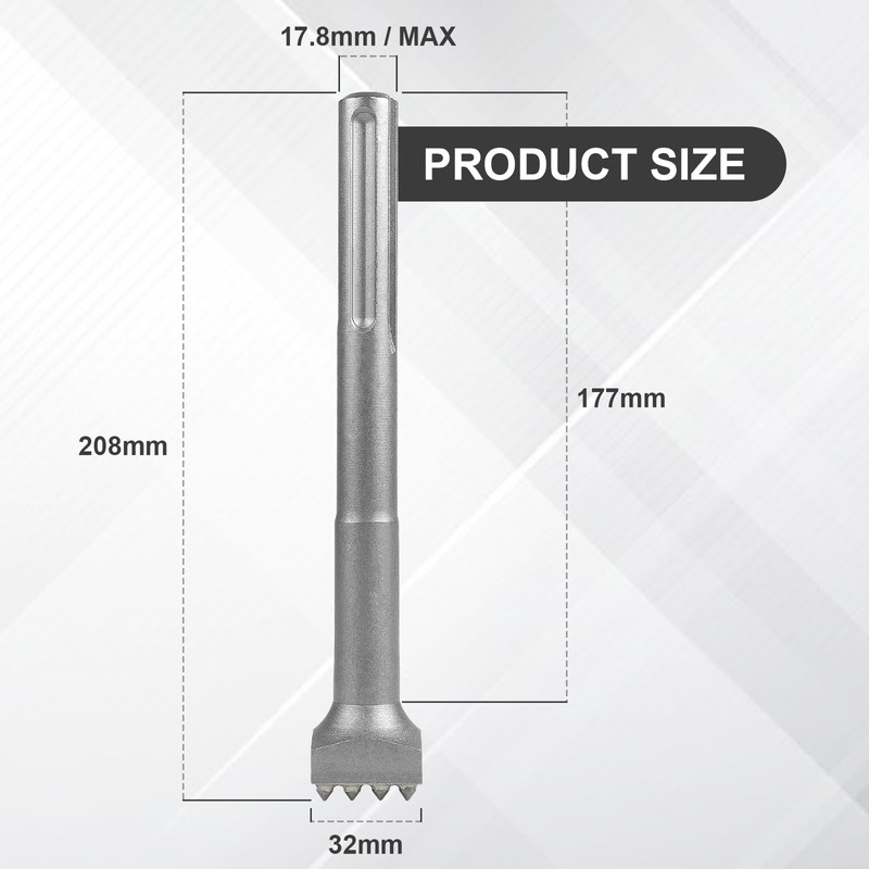 • Leveling and grinding function: this chisel can be applied not only for chiselling and trimming, but also for leveling and grinding concrete surfaces, making it a multi-function tool