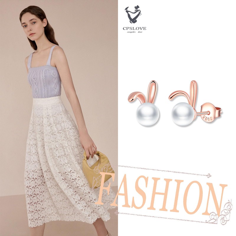 CPSLOVE Women's Pearl Earrings 925 Sterling Silver Cute Rabbit Pearl Stud Earrings for Girls Creative Fashion Jewellery, Sterling Silver, Pearl