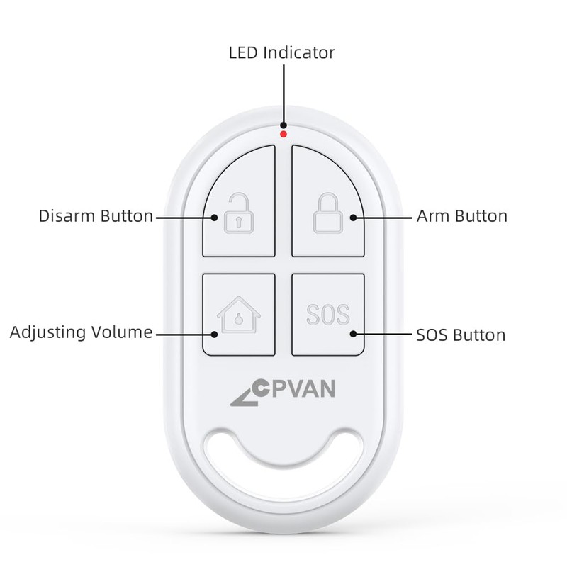 - The remote control is compatible with the CPVAN CP2 Home Alarm System.
