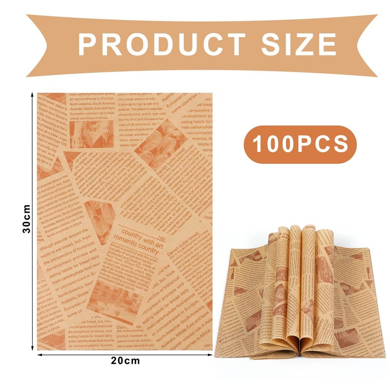 - Box contents: you will receive 100 sheets of English baking paper, the size is 20 x 30 cm, rolled up to not take up space, can be used in restaurants, cafeterias, private kitchens, snack bars, bakeries, shops, fast food restaurants, burger shops, etc.