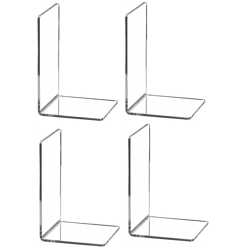 Cq acrylic 4 PCS Book Ends,Plastic Clear Book Holder Stand Heavy Duty Decorative Bookend,Desktop Bookshelf Organizer for Home Office School Supplies,7.28x4.8x4.8 Inch