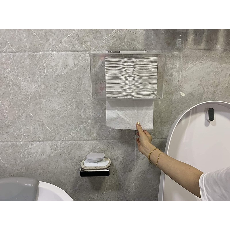 Cq acrylic Wall Mount Paper Towel Dispenser with Lid,Clear Folded Paper Towel Holder for Bathroom Toilet and Kitchen,Suitable for Z-fold, C-fold or Multi-Fold Paper Towels,Pack of 1