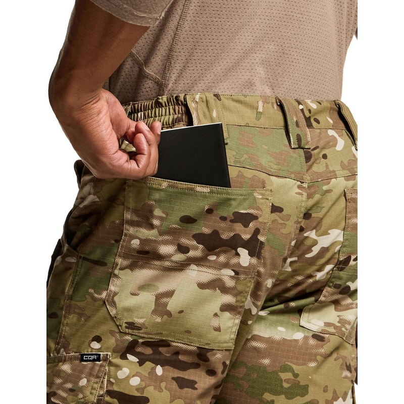 CQR Men's Flex Ripstop Tactical Pants, Water Resistant Stretch Cargo Pants, Lightweight EDC Hiking Work Pants, Print Dura Flex Mag Pocket Utility Camo, 30W x 32L