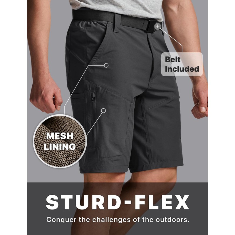 CQR Men's Hiking Cargo Shorts, Quick Dry Stretch Tactical Outdoor Shorts, Lightweight Camping Golf Shorts with Multi Pockets, Shenandoah Shorts Black, 40W x 10L