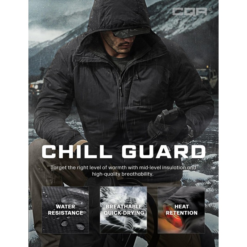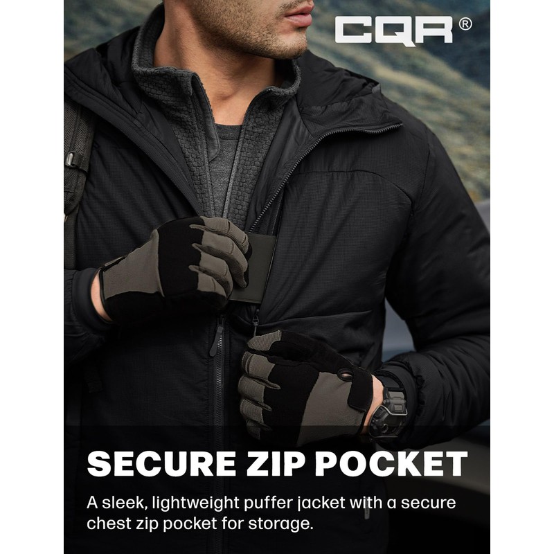 CQR Men's Lightweight Insulated Jacket, Windproof Packable Water Resistant Warm Active Coat for Hiking Work Outdoor Tactical, Veil Black, Large