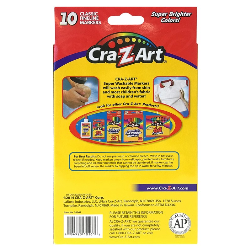 Cra-Z-Art Super Washable Markers, Fine Tip, Assorted Barrel, Assorted Ink, Pack of 10 Markers