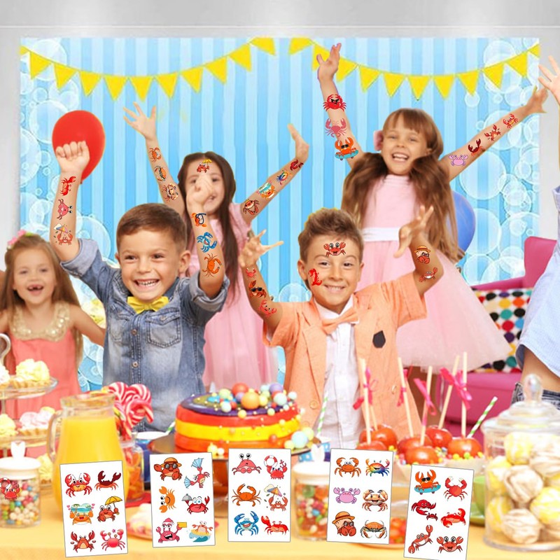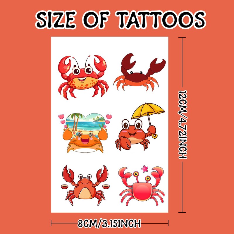- Perfect for Various Occasions: Ideal for crab boil parties, seafood picnics, beach parties, baby showers, and sea animal themed events. These crab tattoos also make great party favors, Children's Day giveaways, classroom rewards, and goodie bag fillers, adding fun to any occasion