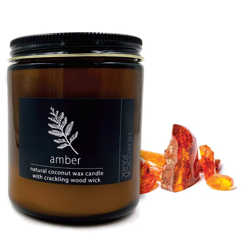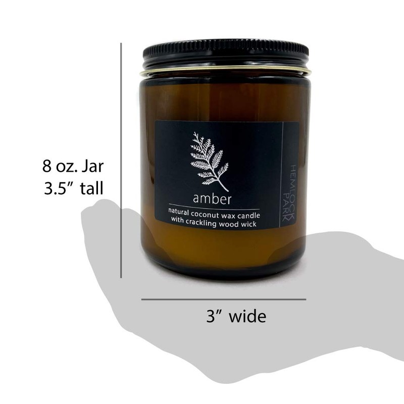 Crackling Wood Wick Candle Handcrafted with Organic Coconut Wax and Essential Oils (Amber, Standard 8 oz)