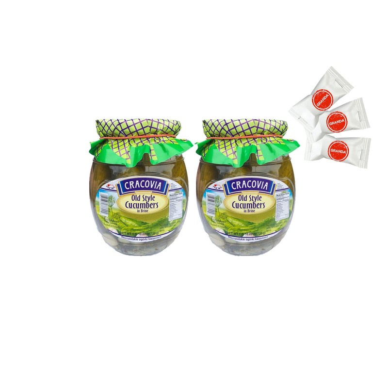 CRACOVIA OLD STYLE CUCUMBERS IN BRINE (staropolskie ogorki kiszone) 2 pack x 720g (25.39 oz). Product of Poland.
