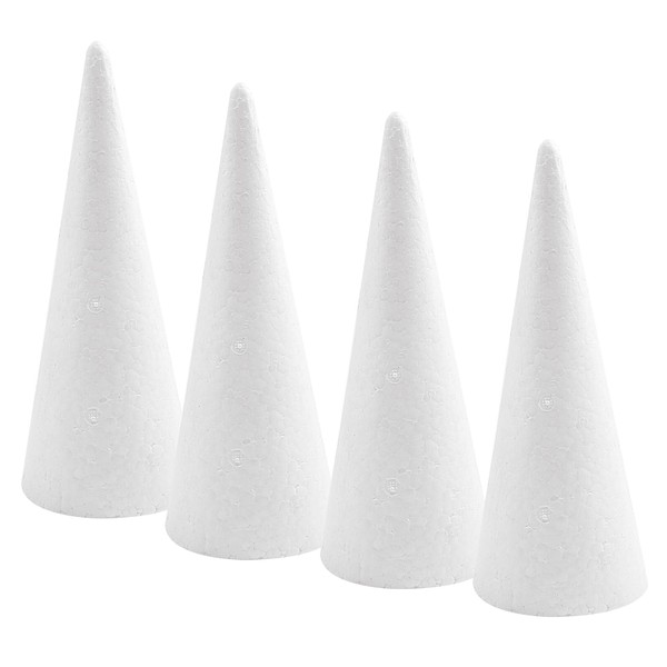 Crafjie Foam Cones for DIY Arts and Crafts (4.1 x 13.6 in, 4 Pack), White Polystyrene Christmas Tree Foam Cones Craft Supplies, for DIY Home Craft Project, Christmas Tree, Table Centerpiece