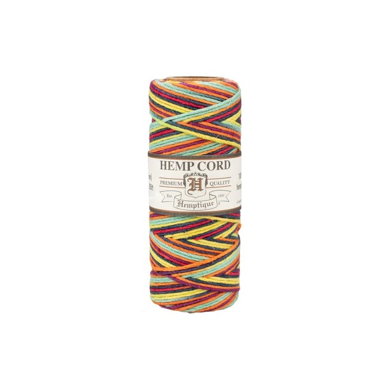 Craft County 100% Hemp Cord Spools – 205 ft (62.5m) Crafting Cord with a Polished Finish – Rainbow (1mm)