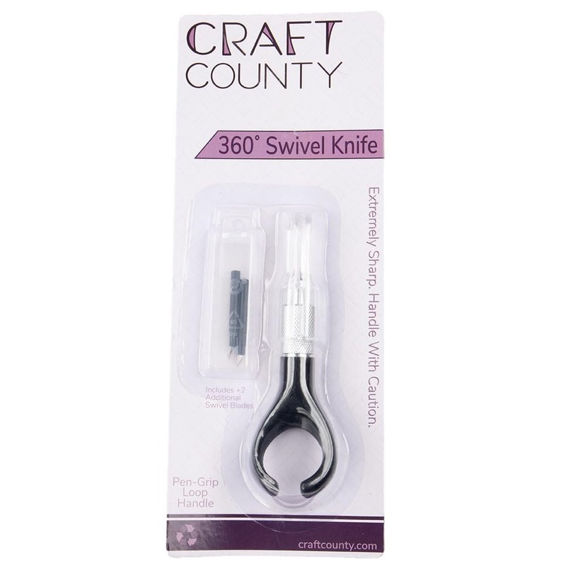 Craft County Loop Handle Pen-Grip Crafting Knives – Ergonomic Precision Blades for Scrapbooking, Sewing, and More! (Swivel)