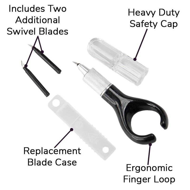 - Loop Handle: This finger loop handle prevents the knife from rolling around when not in use and provides added visibility of your path as you cut those intricate patterns.