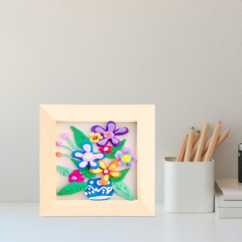 This DIY clay painting photo frame is mainly made of safe and gentle wood material, which is and has a great texture. Children can safely use it for DIY production and enjoy more handmade fun. The simple design makes it a great piece of that goes well with kids' clay paintings.