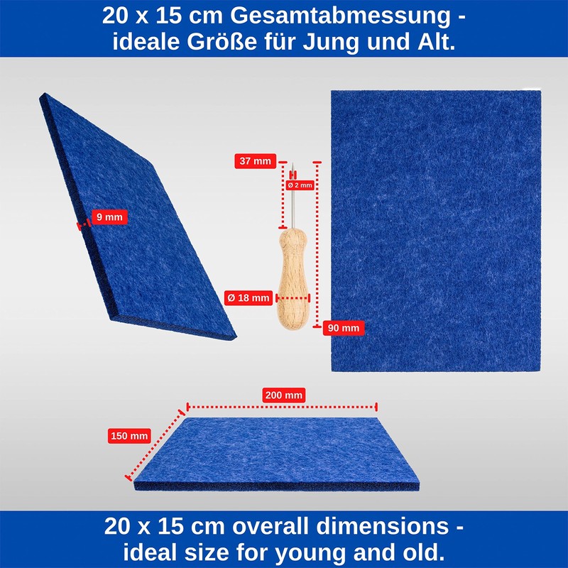 - Prickel felt craft set with 20 x 15 x 0.9 cm mat and prickle needle with natural wood handle: this prickel underlay can be used for standard tingling designs and is neither too large nor too small - with the pointed prickel needle patterns can be punched out precisely.