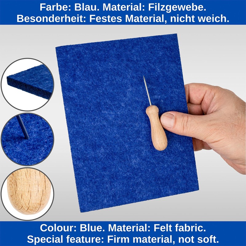 Craft Prickling Needle and Felt, Blue, 20 x 15 x 0.9 cm Mat, Made of Solid Felt Fabric, Prickling Kit for Children and Adults, Pointed Prickle Needle with Wooden Handle, No Templates