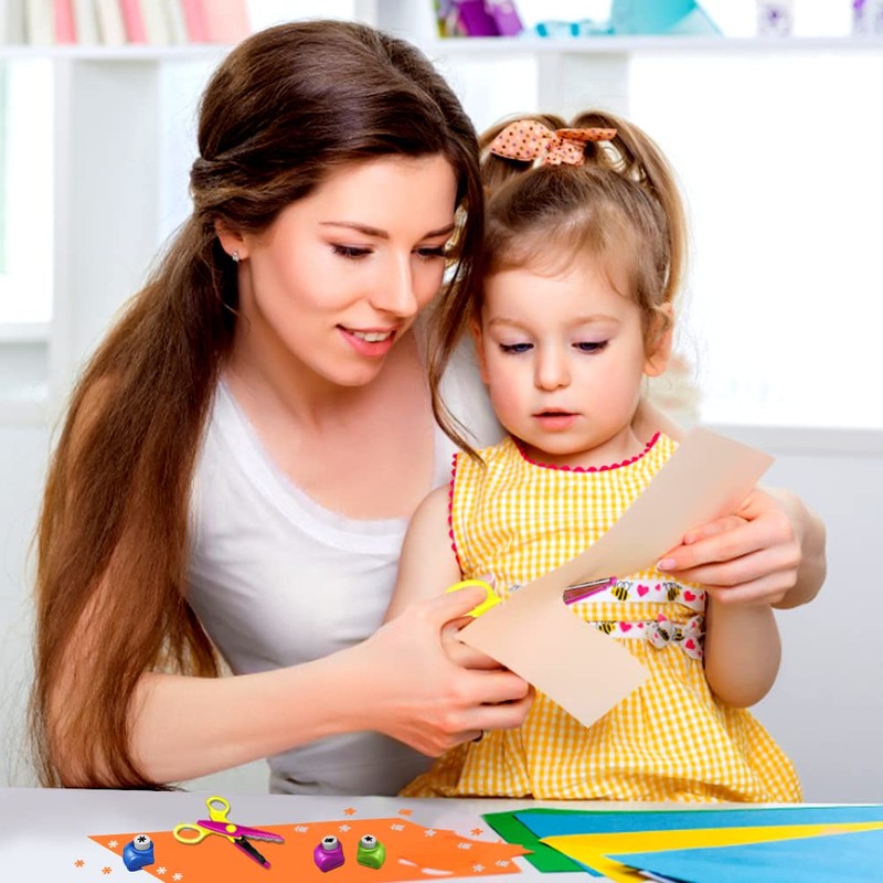 - Paper punch children: Our products also match 4 colours of hole punches with a total of 8 different patterns, including music, stars, bow knots, hearts, sakura, flowers, four-leaf clover and snowflakes. Fully stimulate children's creativity and imagination.